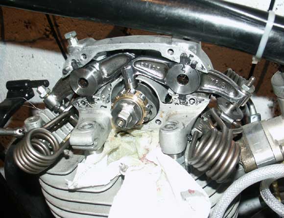 | Cambox Assembly The cambox and bevel drives are certainly the most distinctive part of a SOHC engine, and although not as complex as the DOHC version, they still need great care when assembling to get the best from them. They have a reputation particularly for puking oil out from the exposed rockers, all over the rear of the bike and the luckless rider’s legs. I have not had enough experience of owning different engines to confirm how true this is, but from talking to seasoned engine builders such as Stu Rogers, I know that it is possible with careful assembly to keep this to a minimum (as a postscript to this, having now ridden the bike in 4 or 5 events I have found this particular cambox to be remarkably oiltight, but freely admit that the mileage up to now has been small). | ||||||||||||||||||||||||||||||||||||||