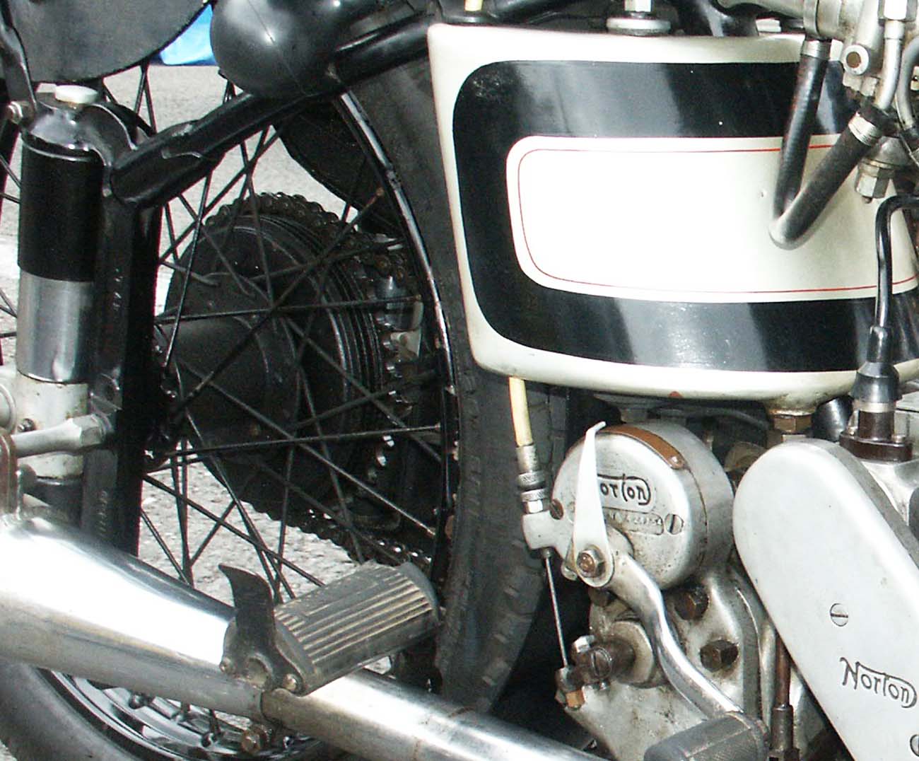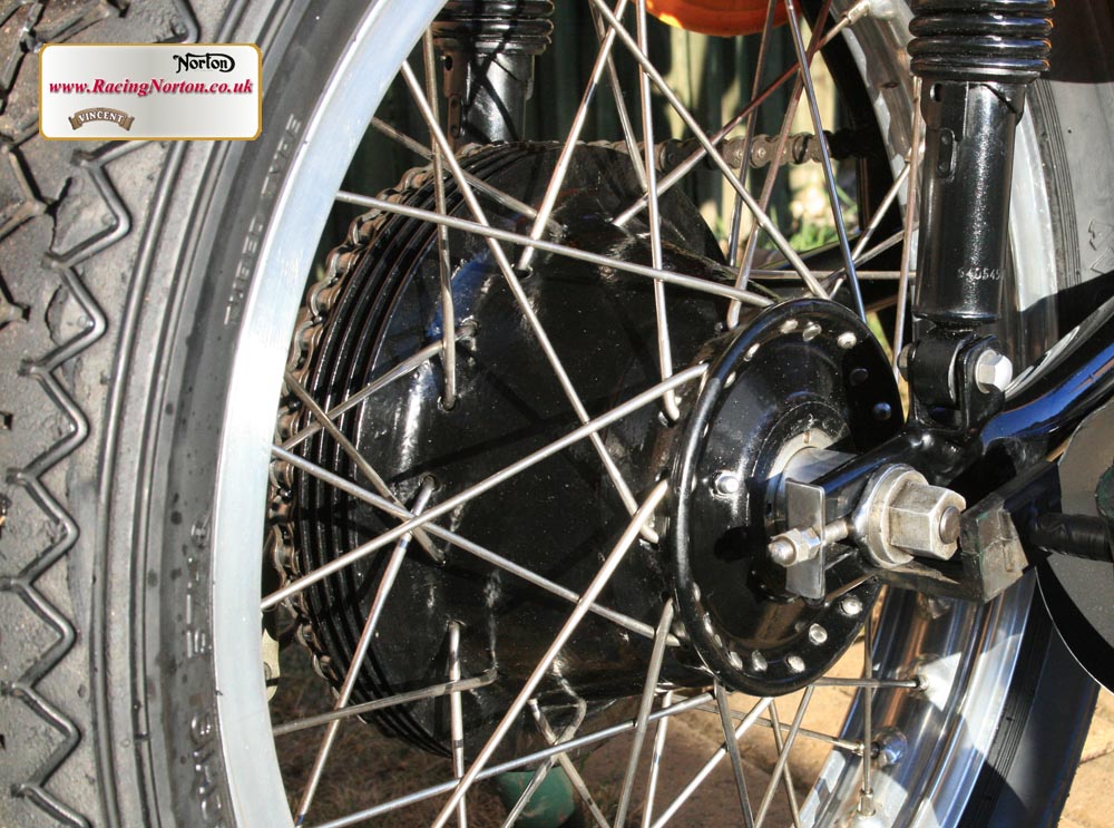 With thanks to good customer - Phil Newstead, this bike was photographed at the NOC 100th Anniversary celebrations - and clearly gives a good view of the early Norton brakes, which were seperate to the sprocket and based on the style of seperate (RE type) rear drums. I believe similar drums were employed on Brough Superiors of the period