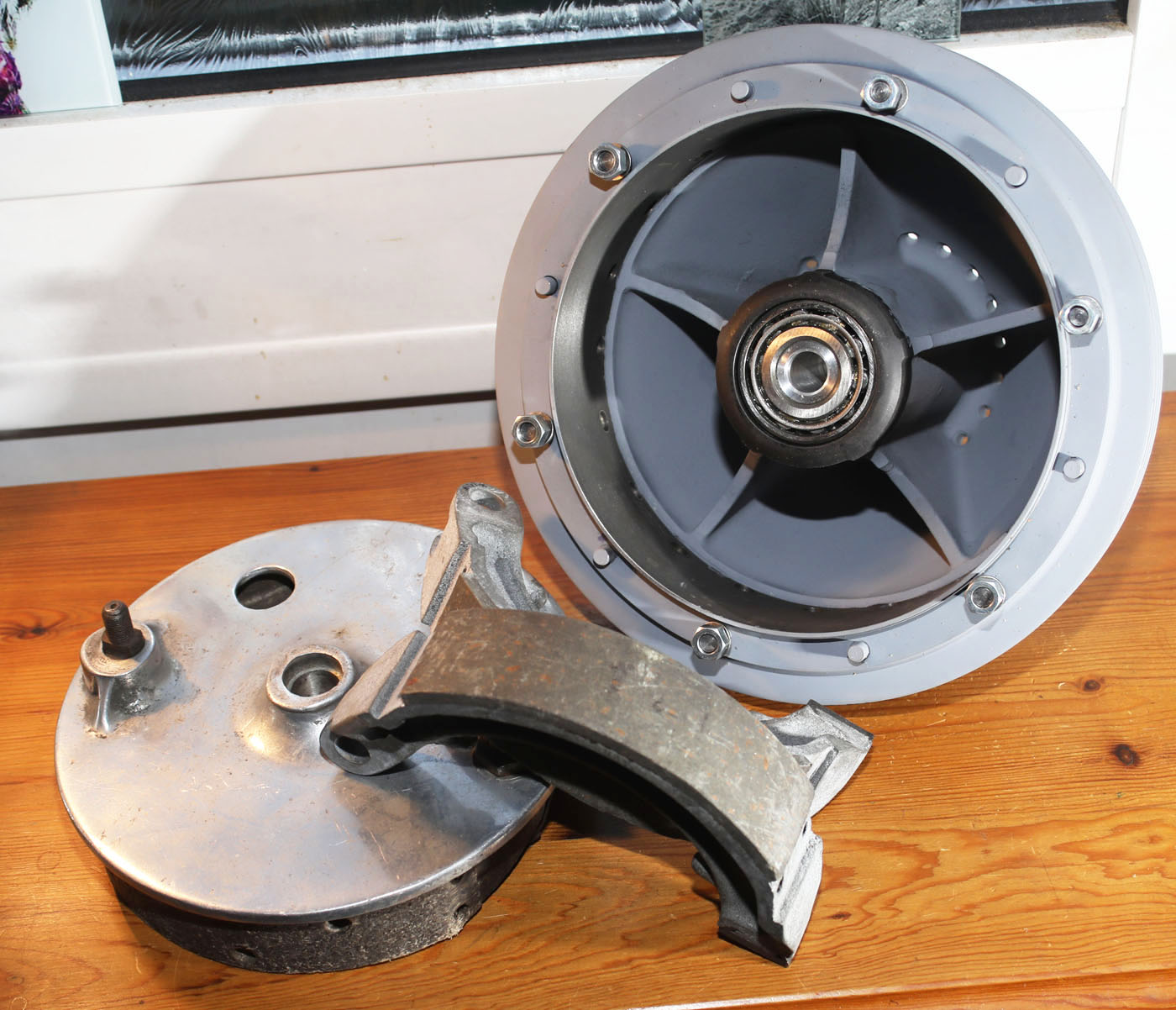 Final picture shows the magnesium brake shoes loosely fitted into the brake drum - more about these in the article