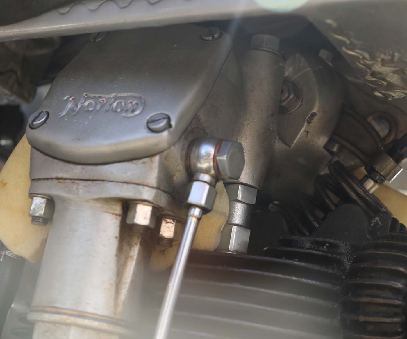 However, the one feature that seemingly all the SOHC cambox’s shared was that they struggled to keep their oil inside their central camshaft chamber! particularly when slightly worn or well used – a Norton International with a rusty oil tank is a rarity!