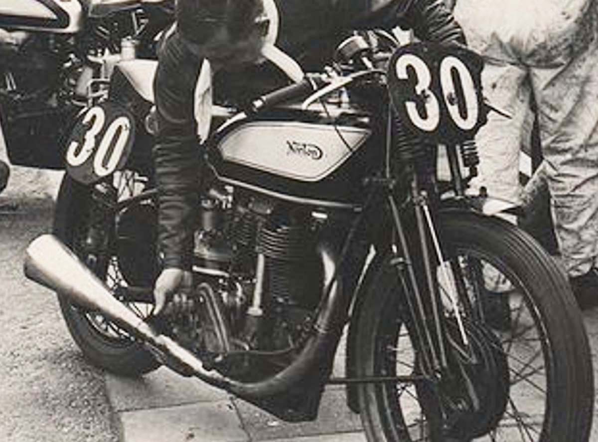 1936 Saw the introduction of the Pepperpot type) Plunger frame, as shown here with Norton's legendary rider of the time - Jimmy Guthrie