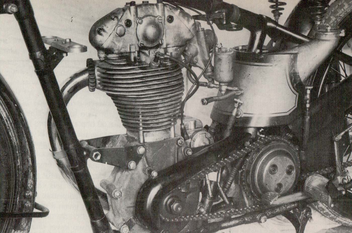1935 was the last year the Works team used a rigid frame, but the engine had larger finning and most castings were in magnesium alloy