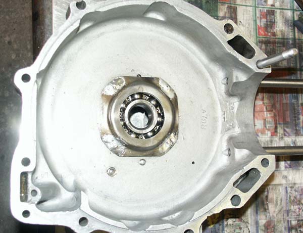 | Crankcases The crankcases are pre-war International crankcases and looked, overall, to be in very good condition. As bought, they had already had a lot of remedial work, with what looks to be both main bearing journals re-sleeved and new bearings fitted. I was told by the seller that this work had been professionally done, and (unlike the flywheels) I would certainly agree, as it looks a very neat job indeed. When purchased the bearing journals had already had the bearing retaining plates fitted, and the screws locating them had been soldered over. I did want to check that everything underneath looked ok, so I got the blowtorch out and gently removed the solder, revealing the screw heads underneath, allowing them to be easily unscrewed and removed. For those not familiar with Norton racing single engines, they are all fitted with bearing retaining plates, secured to the crankcase by whitworth thread screws. The function of these plates (not surprisingly!) is to stop the bearings loosening from the crankcase housing under racing conditions, and working out from the crankshaft. In reality, I don’t know if the likelihood of this is great anyway (I have certainly never experienced it with any ES2 engines), but I was advised by Stu Rogers that they should not be left out. Interestingly, the sports based International engine has 3 screw fixing bearing retainers (triangular in shape) while the pure racing Manx based crankcases are fitted with four point (square) plates. What is unusual about my engine is that someone had fitted a four plate retainer, but to the timing side crankcase only. Not sure why this is, but it has been nicely done, so not a problem. Apart from cleaning up all mating faces and carefully removing one or two more noticeable burnishes on the exterior, the crankcases have required very little work to complete. They were even fitted with brand new barrel studs and oil unions, almost unheard of with the engines I have started with in the past! |